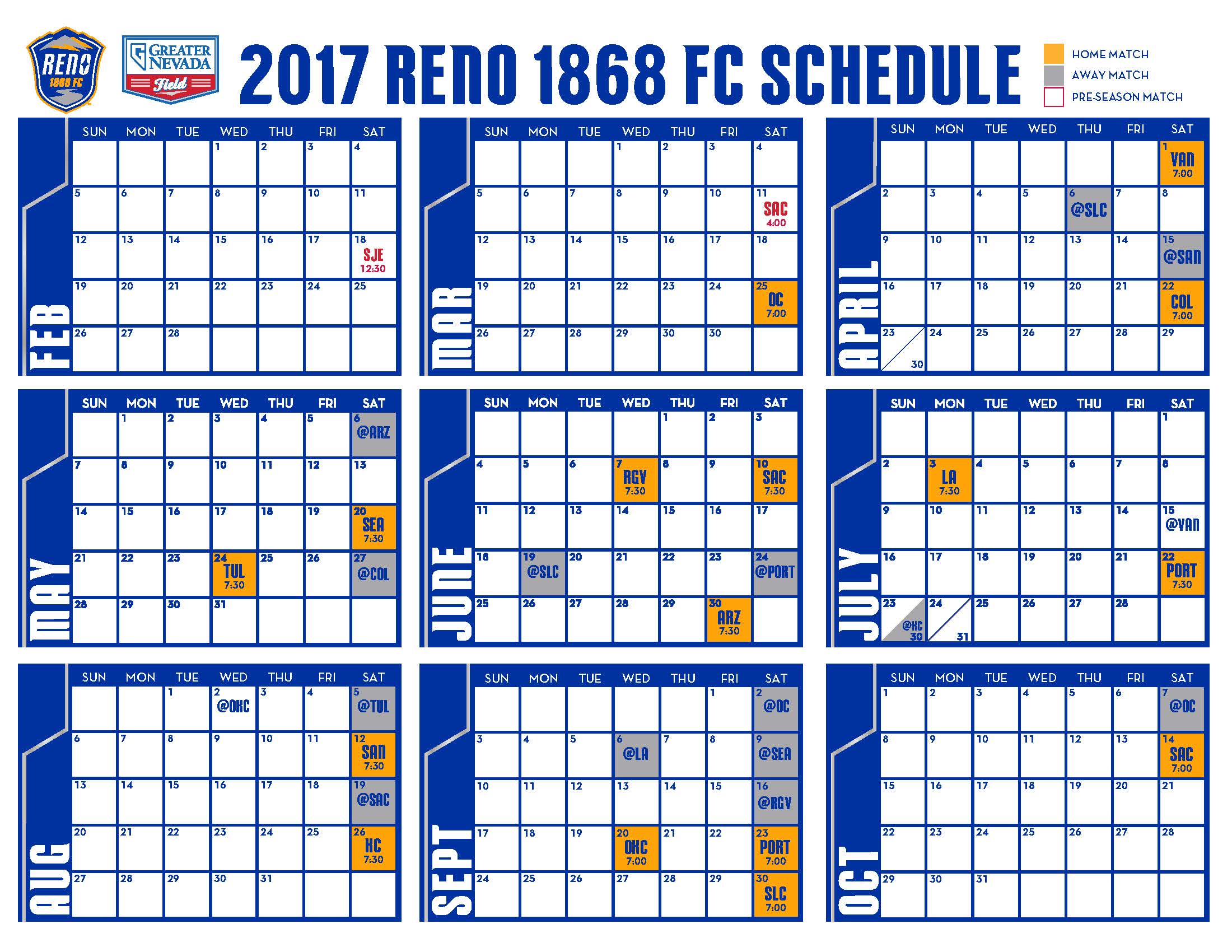 | Saturday, August 19, 8:00 pm | Reno 1868 FC | Papa Murphy's Park | Tickets | Radio: Sports 1140 KHTK |